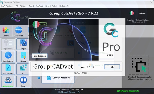 Il software Group CADvet PRO è un pacchetto completo per il disegno tecnico, la modellazione 2D/3D e la documentazione professionale sviluppato da Saverio Cubeddu. La versione più recente (2026) include strumenti avanzati per la grafica vettoriale e il rendering.
